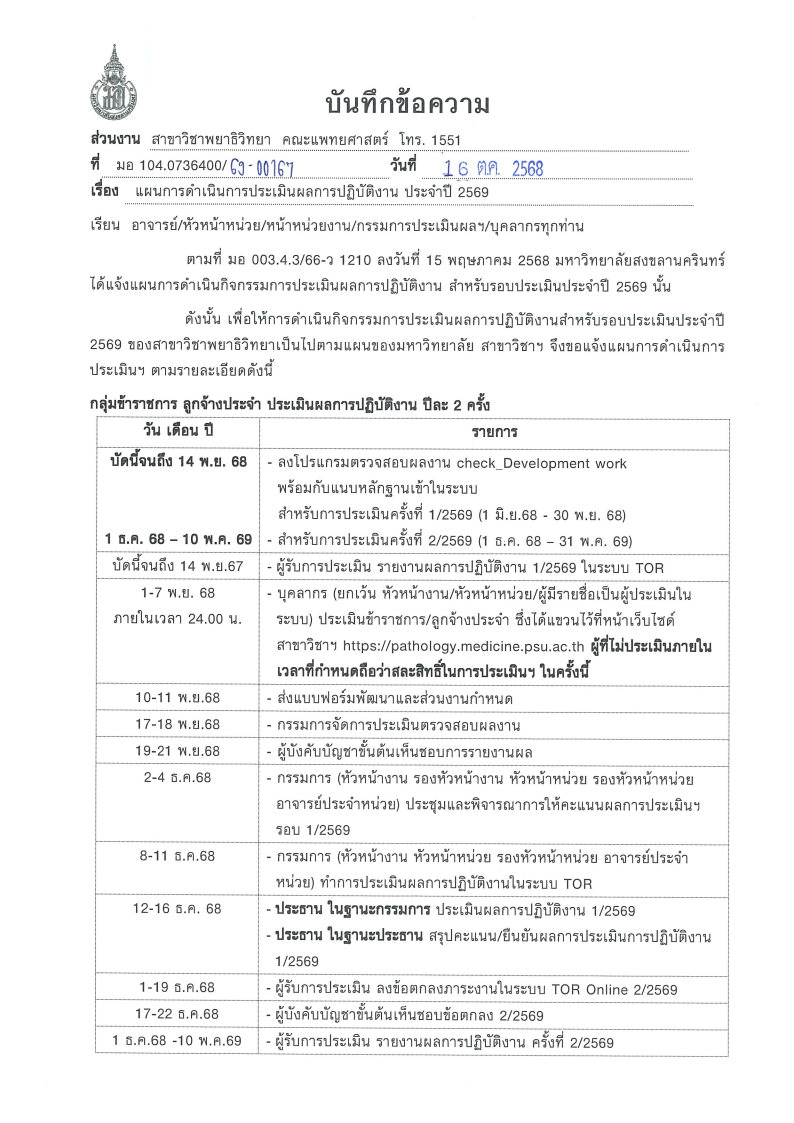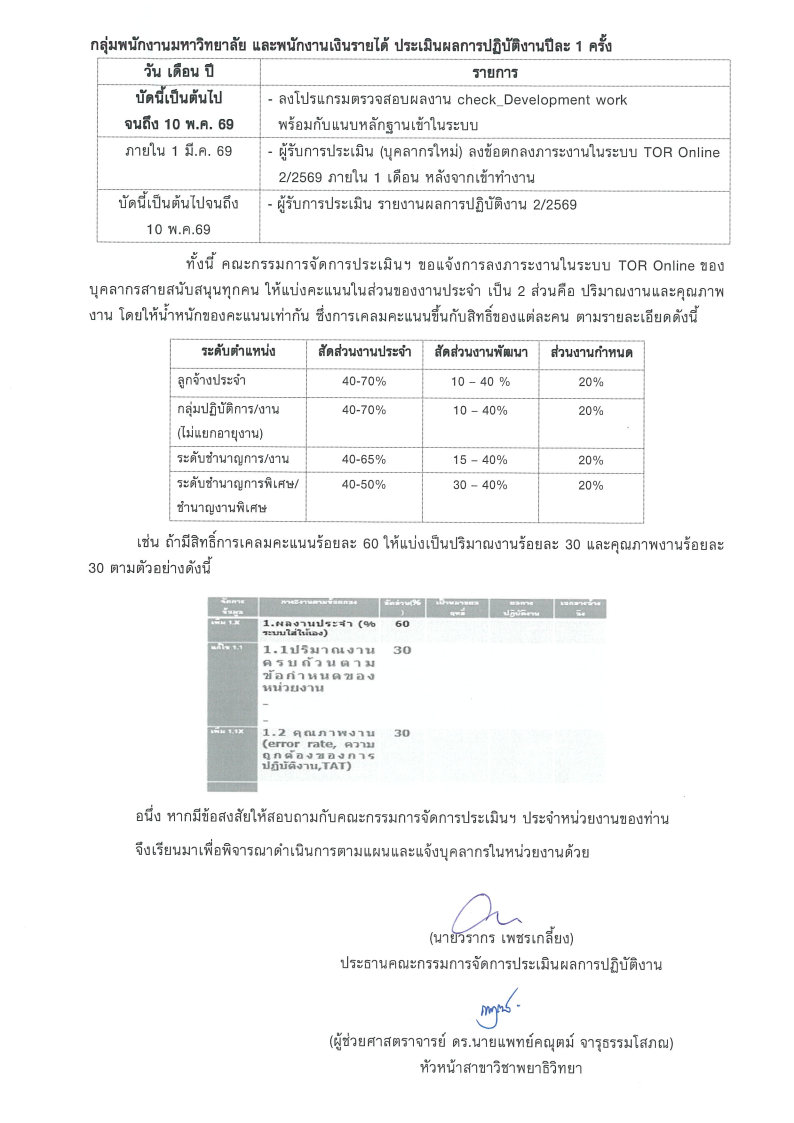 กำหนดช่วงเวลาในการประเมิน ตั้งแต่วันที่ 1-7 พฤศจิกายน 2568 ภายในเวลา 24.00 น.