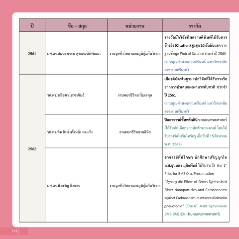 2561 ผูศั.ดูร.สมนรพรรษ์ สุระสมบัตพัฒนา งานจลช่ววทยาและภ่มิคุมกนวทยา ฐานุข้อมล่ Web of Science ป็ร่ะจิาป็ 2560