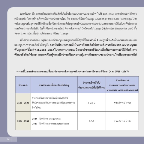 ตารางที่่ 2 การพื่ัฒนัาแลึะการเปีลึ่ยนัแปีลึงของหนัวยมนัษยพื่นัธิศาสืตร์ สืาขาวชาพื่ยาธิวที่ยา (พื่.ศ. 2518 - 2567)