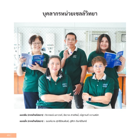 ่ ุ ิ ์ บค์ล็ากรหนวย่เซล็ล็วที่ย่า แถวยืืน (จากซ้้ายืไปขวา) : จิราภรณ์ มหาวงค์, ชัชวาล สายศิลป์, ณัฐกานต์ หวานสนิท ่ ์ ู ิ แถวน�ง (จากซ้้ายืไปขวา) : อนงค์นาถ สุทธรัตนพันธ์, ภศิตา จันทรอินทร ์ 453